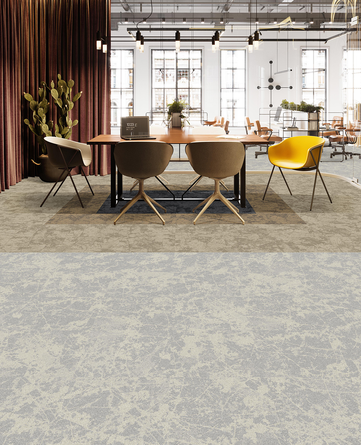 Carpet tiles are individual squares or pieces of carpet that are installed one by one, offering easy installation, repair, and design flexibility. You can replace damaged tiles without removing the entire floor, making maintenance simple and cost-effective. Traditional carpet comes in large, continuous rolls that cover an entire room, providing a seamless look but often requiring full replacement if damaged. Carpet tiles also allow for more creative patterns and mixing of colors, while traditional carpet is usually a single continuous colour or pattern.